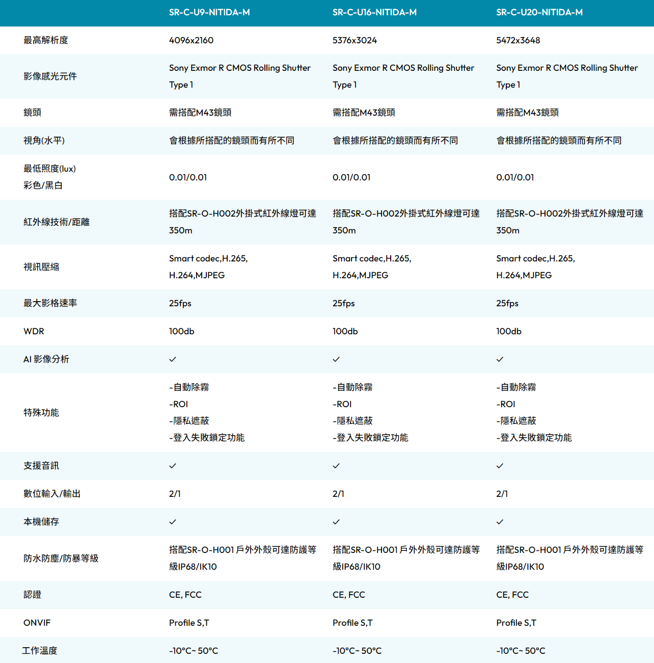 -自動除霧 -ROI -隱私遮蔽 -登入失敗鎖定功能 |